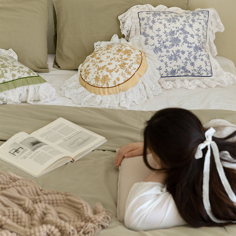 french flower velvety frill cushion