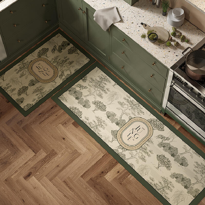 green retro forest kitchen mat