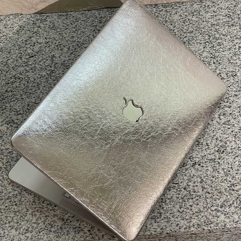 silver leather Mac book case